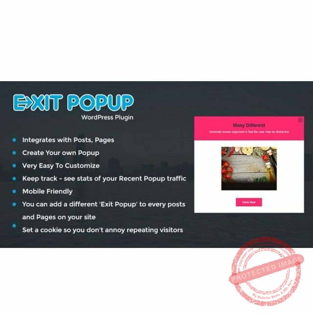 Exit Popup WordPress Plugin is a powerful plugin that allows website owners to easily create and manage exit popups on their WordPress powered website. This plugin will allow you to create separate exit popups on specific posts or pages, or your entire website with the use of global settings.You can add a different ‘Exit Popup’ to every single post on your site, or you can decide to set one for your entire site.Keep track – see stats of your recent Popup traffic.Set a cookie so you don’t annoy repeating visitors